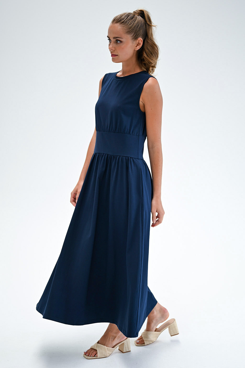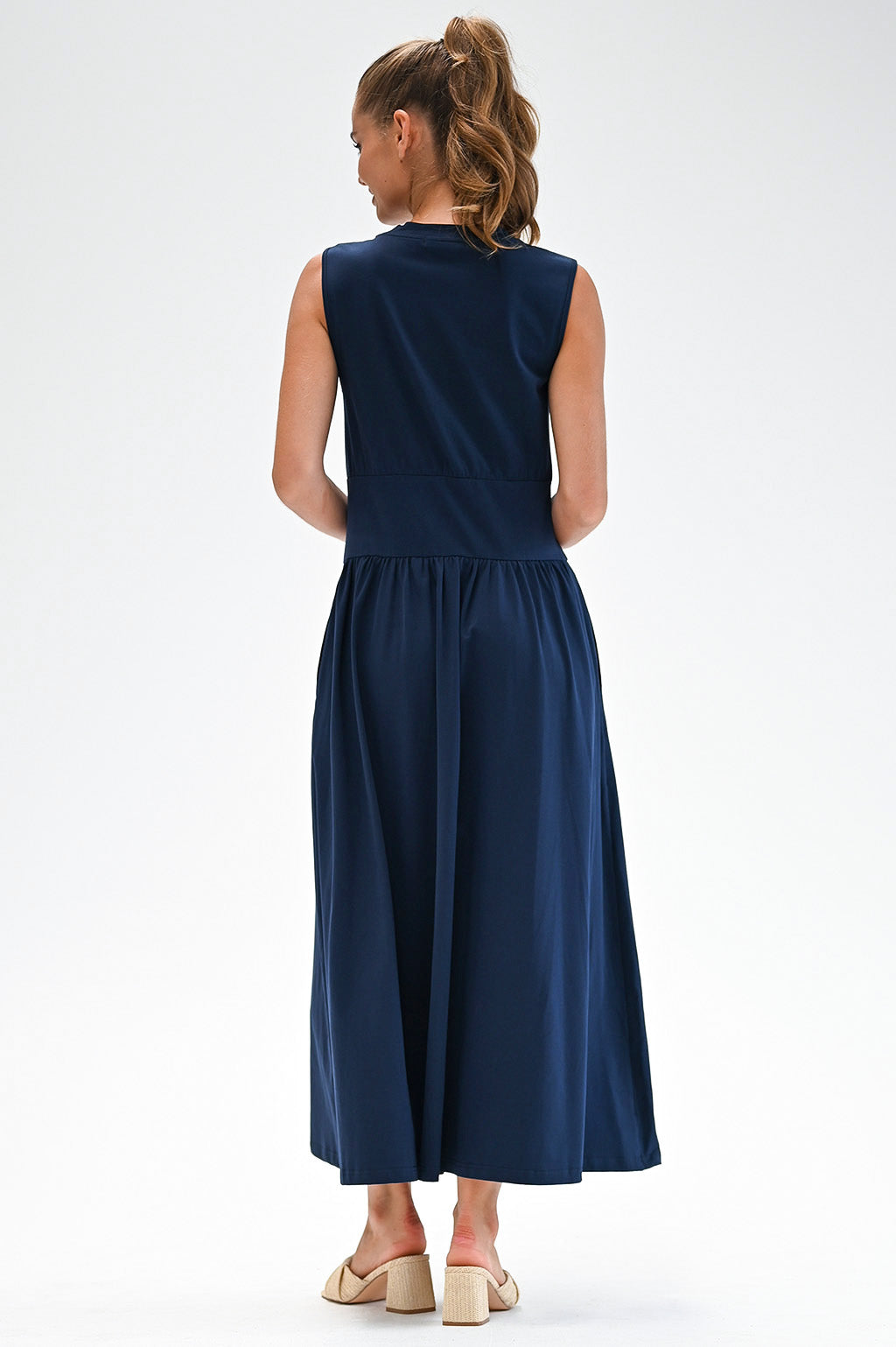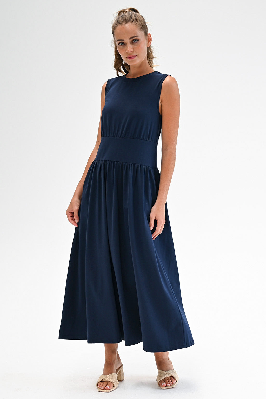 Our studio model Sophie is 170 cm / 5'7" and wears a size Small. The dress sits just above her ankle. Rochelle, our first model, is 178 cm / 5'10" and also wears a size Small.